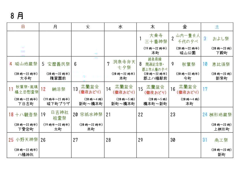 ※天候により、行事の中止や時間変更の可能性があります。